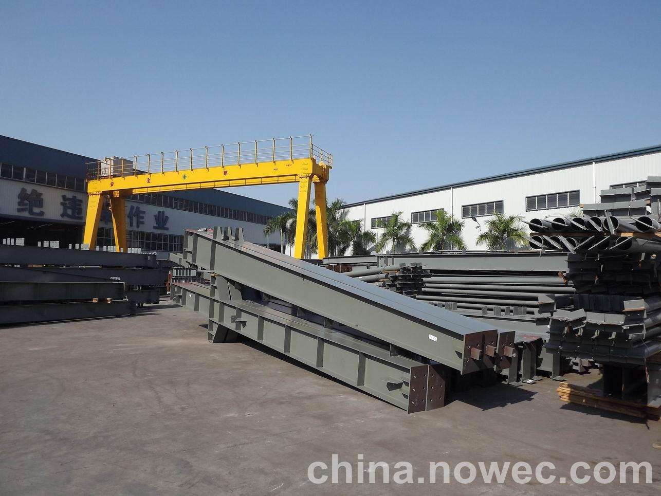 条状单元一般沿长跨方向分割,其宽度约为1~3个网格,其长度为l2或l2/2(l2为短跨跨距)。块状单元一般沿兴化网架平面纵横向分割成矩形或正方形单元。每个单元的重量以现有起重机能胜任为准。条(块)与条(块)之间可以直接拼装,也可空一网格在高空拼装。由于条(块)状单元是在地面拼装,因而高空作业量较高空散装法大为减少,拼装支架也减少很多,又能充分利用现有起重设备,故较经济。这种安装方法适用于分割后网架的钢度和受力状况改变较小的各类中小型网架,如两向正交正放四角锥、正放抽空四角锥等网架。